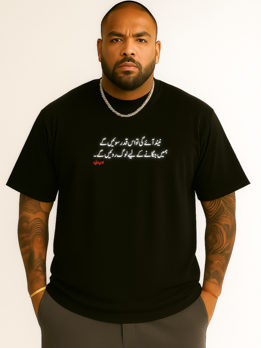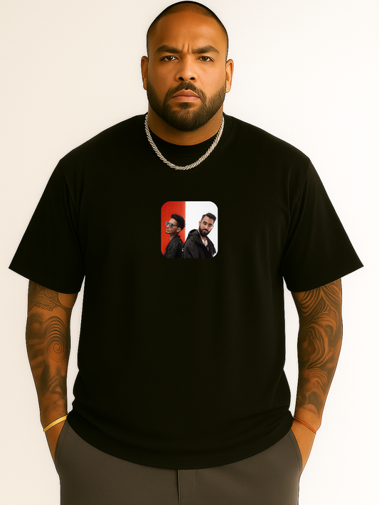 Printed Drop Shoulder Tee ft Talha Anjum - Black