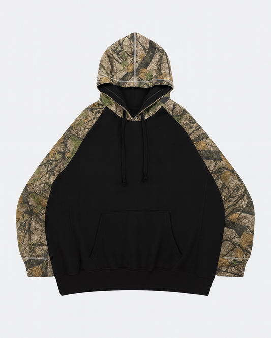 Kangaroo Pullover Hoodie with Printed Camo Sleeves - Brown